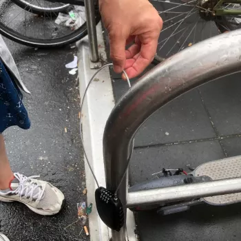The lock is small and lightweight, fitting in my jacket pocket. It seems strong enough to act as a major deterrent to theft.