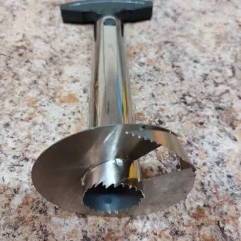 This pineapple tool makes enjoying the fruit fun and easy. It creates sliced spirals and comes with what seems like a plastic apple corer for thinner chunks. It's a marvel of functionality, sharp and saw-toothed. I keep it stored in its original box for safety – it's a gadget that genuinely excels in its task and is worth exploring