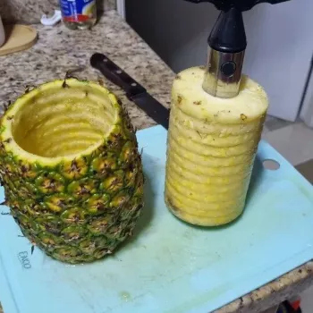 I regret not buying this pineapple peeler and corer sooner! I've always found cutting pineapples a hassle. I love eating them but dread the cutting process. This tool has been a game changer, making the task so much quicker and simpler. An added bonus is using the leftover core and skin to brew a delightful pineapple tea, which we transform into a refreshing pineapple tea lemonade. Thanks to this tool, the whole process is now a breeze